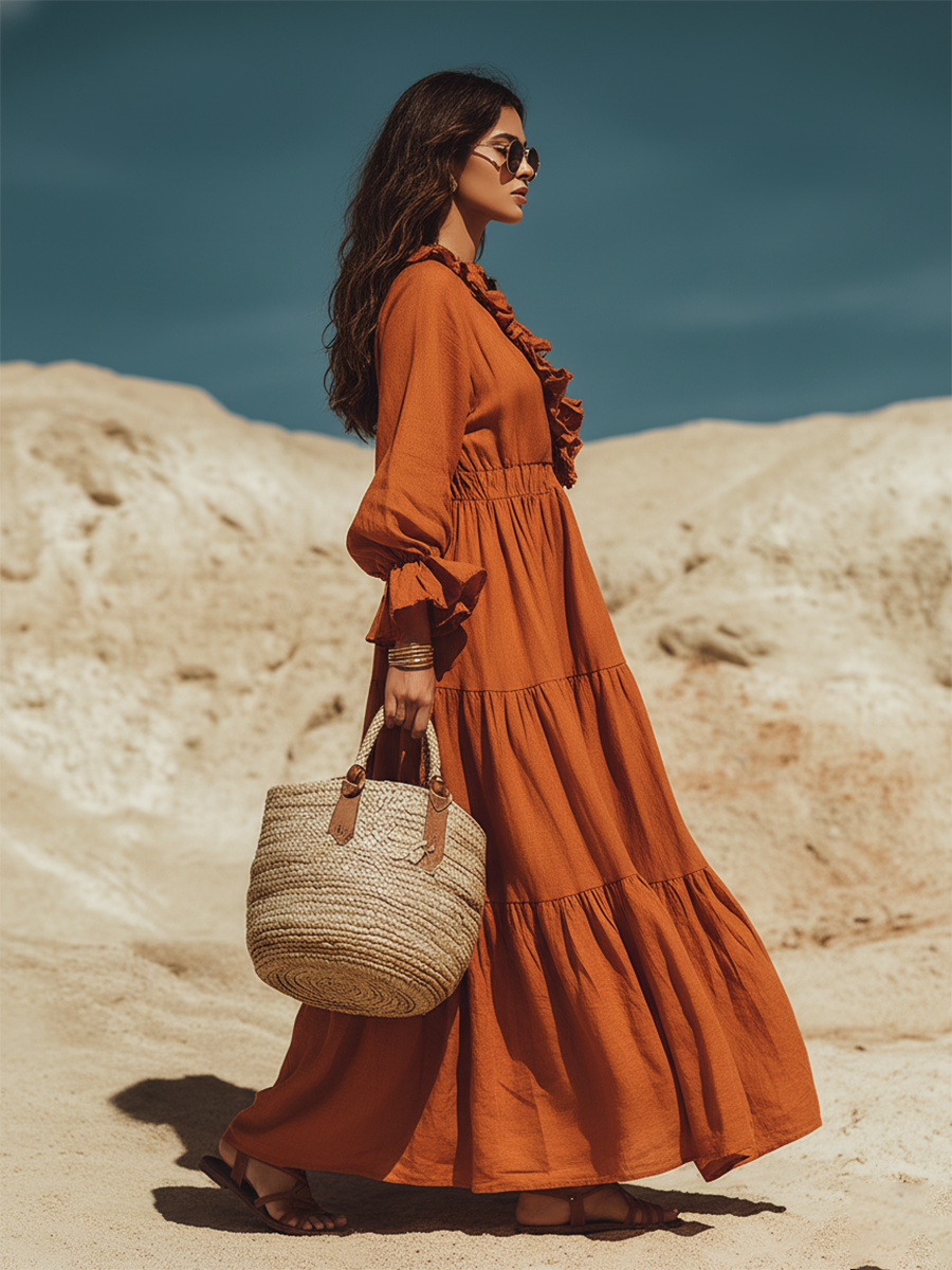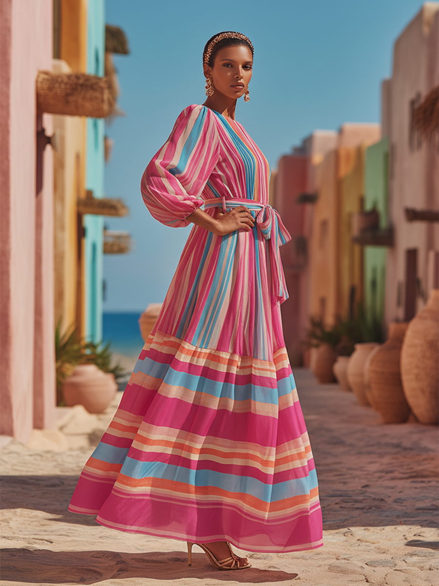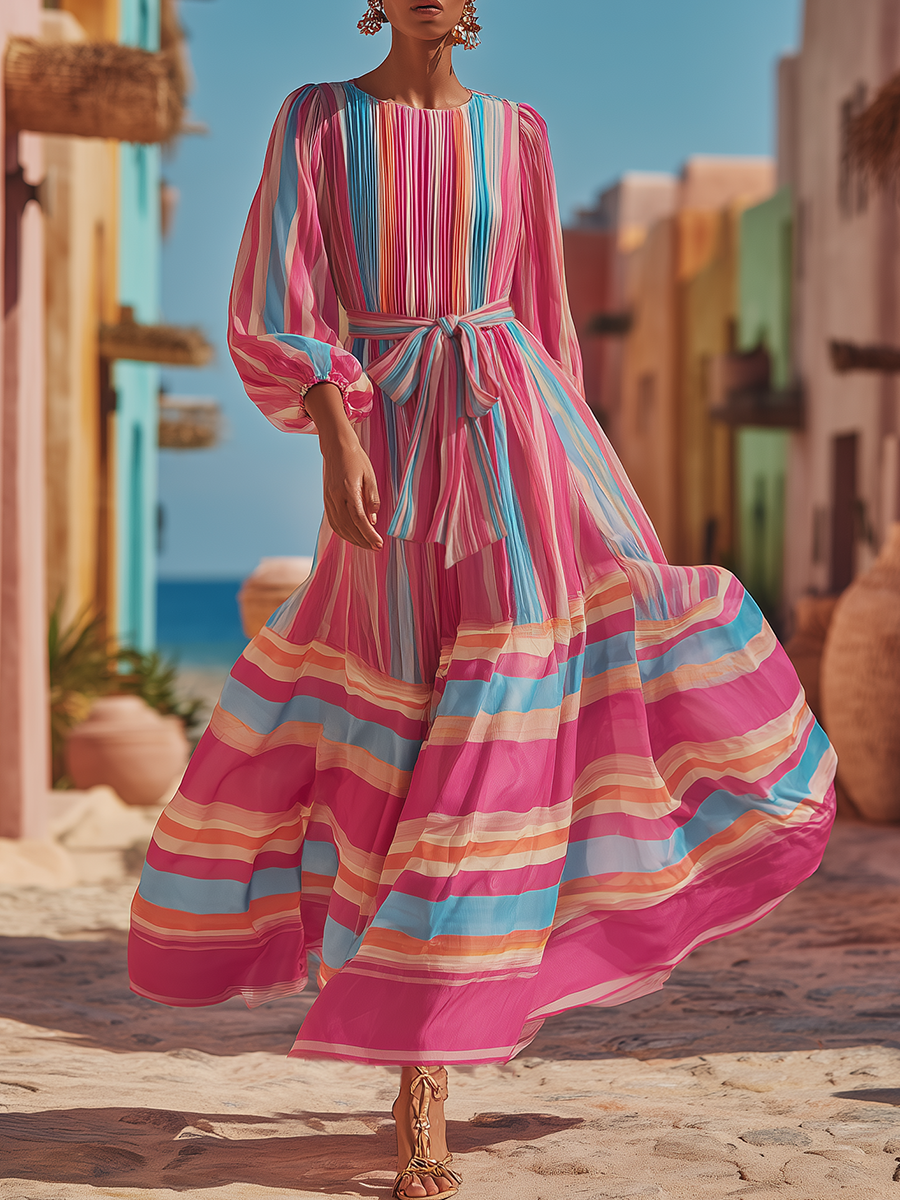 This rainbow printed chiffon dress is absolutely breathtaking! The pattern looks like wearing a sunset, and the skirt sways as if kissed by a gentle breeze when you move—so ethereal and graceful. Whoever wears it becomes an instant fairy. ✨