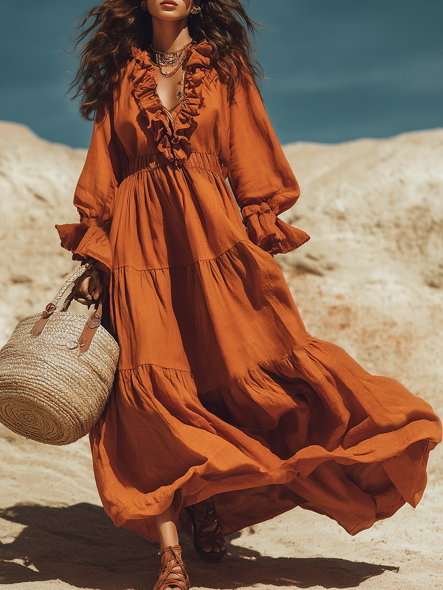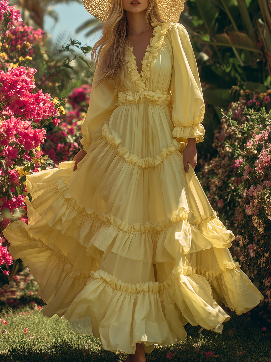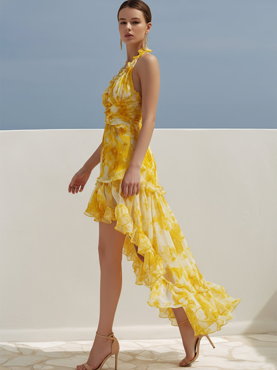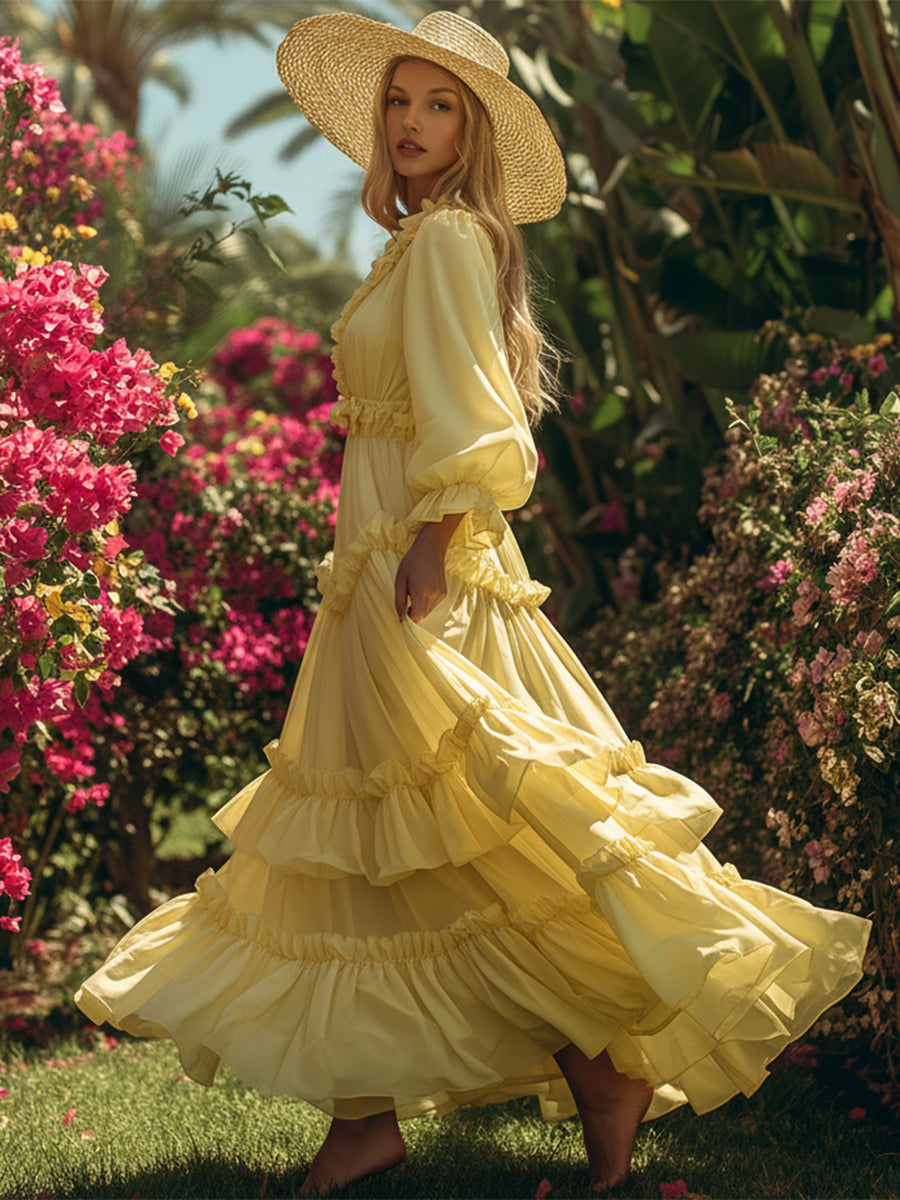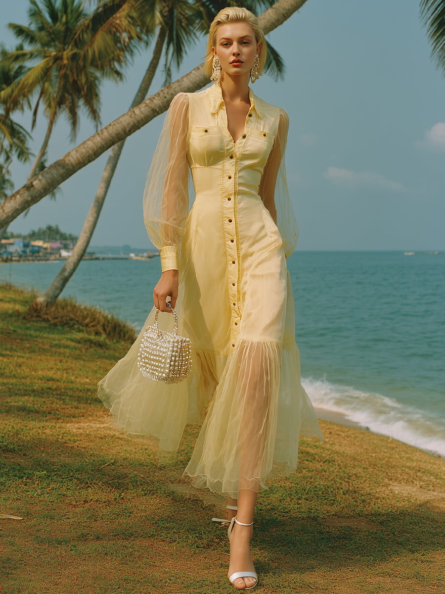 This chiffon dress feels like wearing a misty cloud! Light and flowing in texture, the skirt ripples like water with every step.
