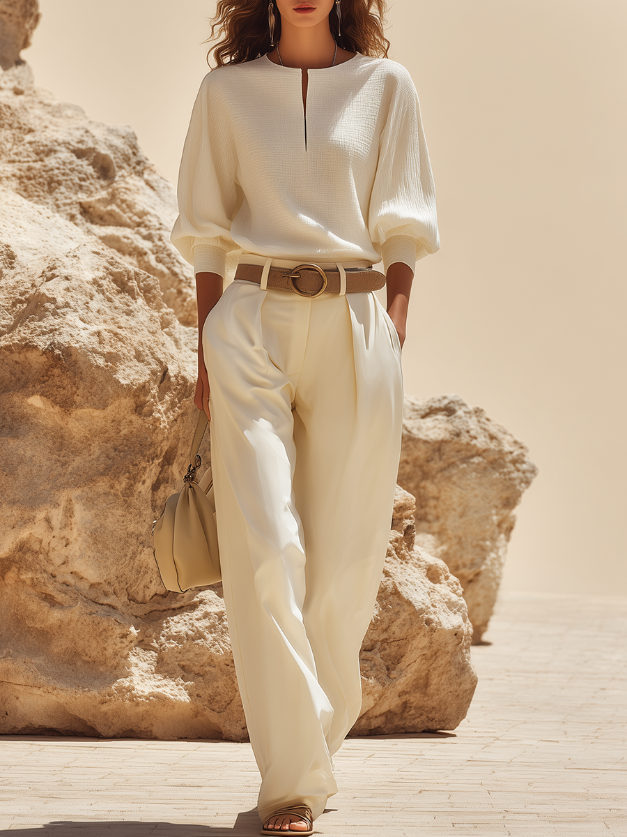 I love the fit and the material is buttery soft. It was light enough to wear on a warm fall day. There were no wrinkles straight out of the package and it worked perfectly for my nieces wedding.