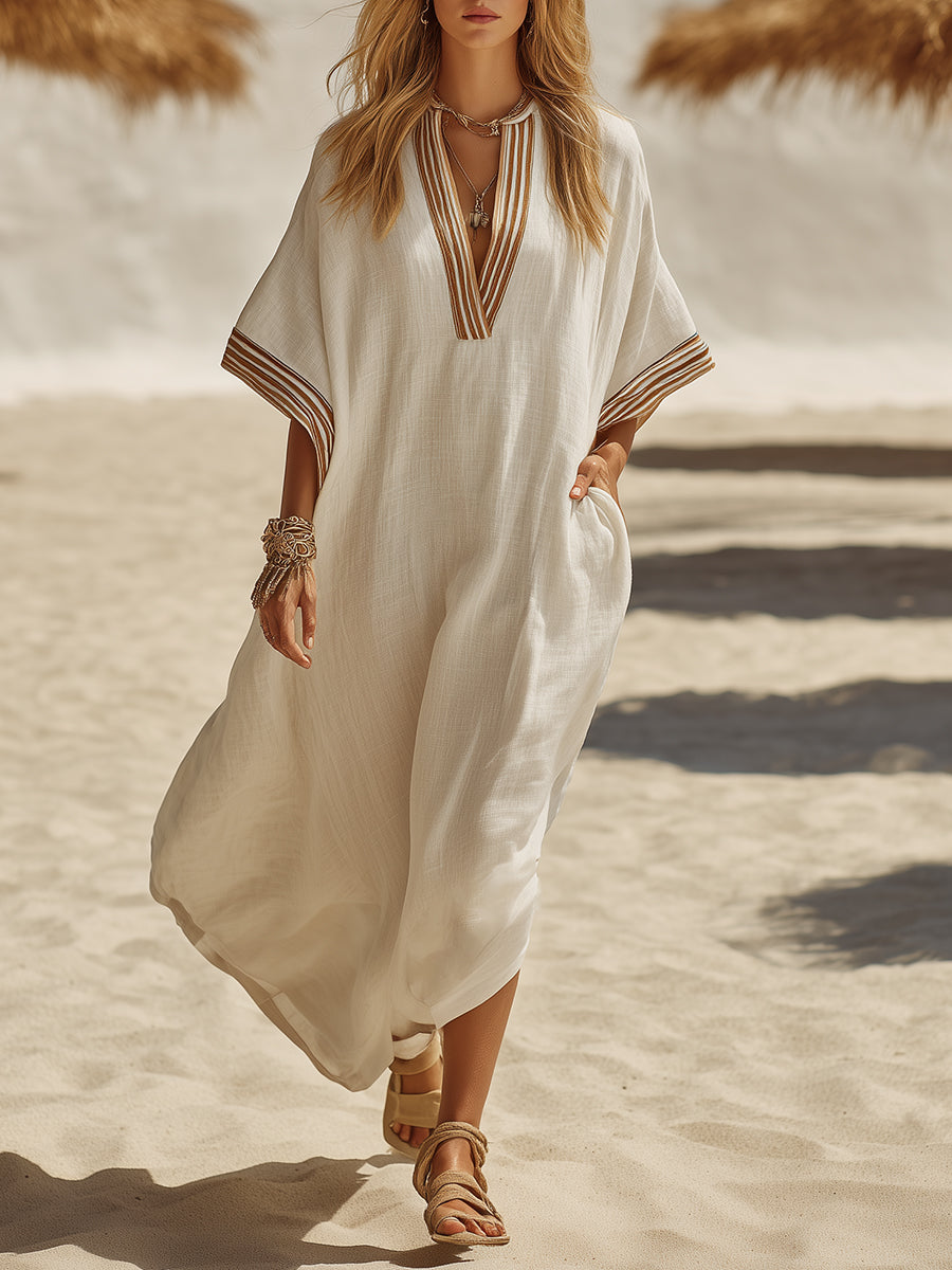 I bought this dress for my engagement photos and loved it! It fits great, with a flattering silhouette that photographed beautifully. The material was comfortable all day and had just the right weight.