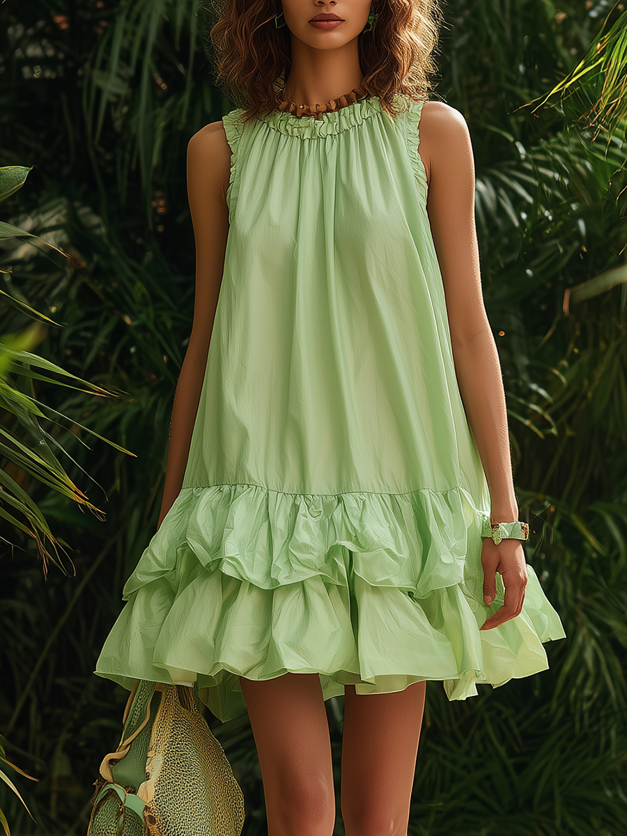 Vacation-style Green Cotton Sleeveless Mini Dress