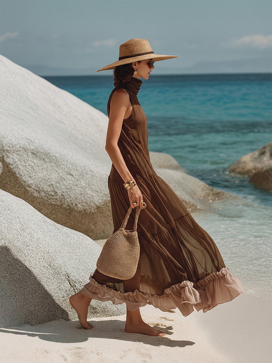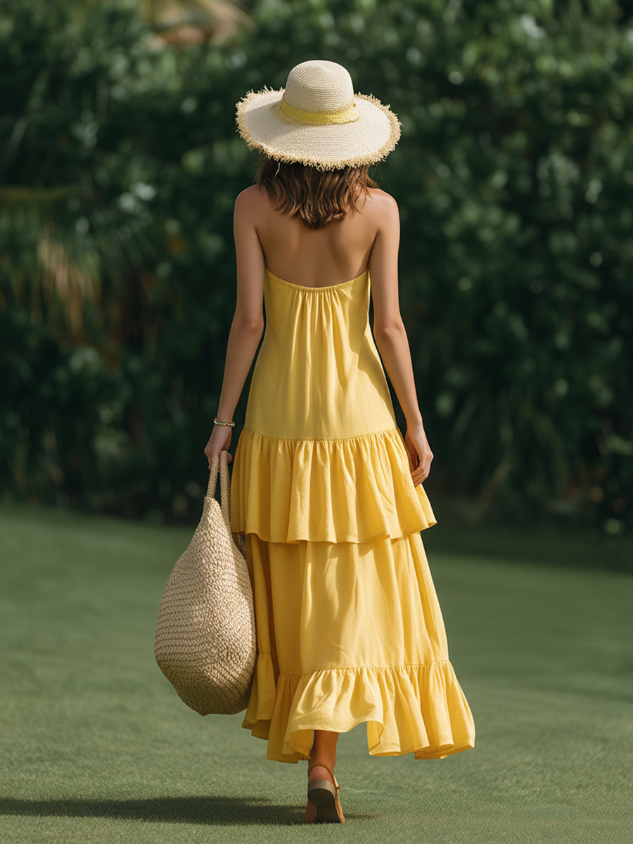 Elegant Vacation Sleeveless Ruffled Hem Maxi Dress