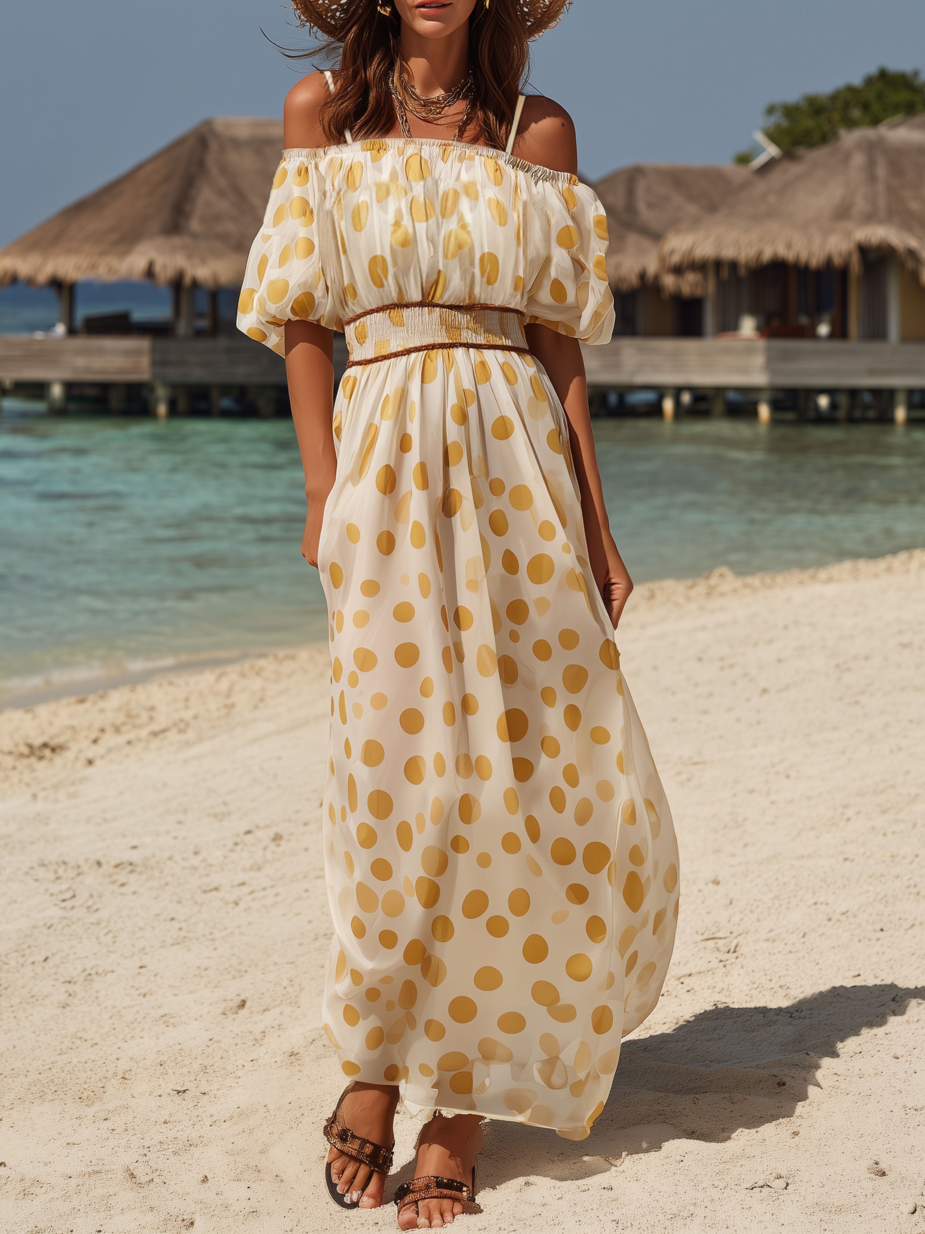 Resort-style Black And White Polka Dot V-neck Short-sleeved Maxi Dress