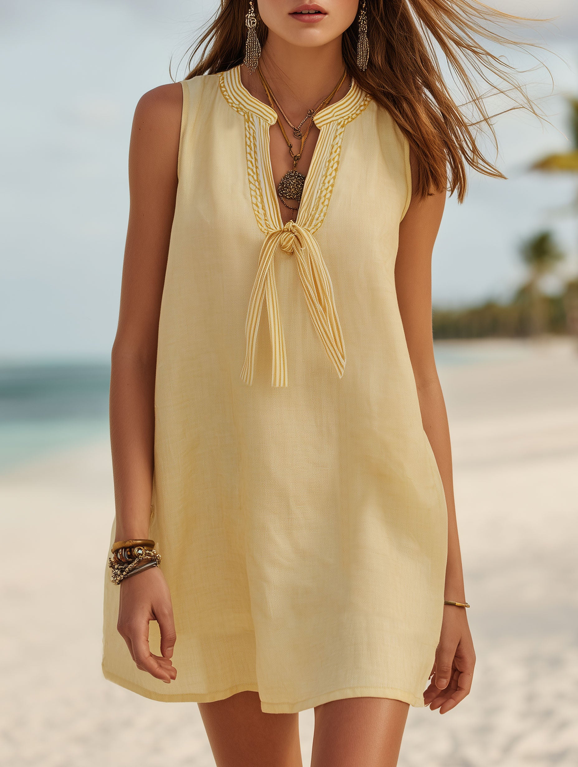 Vacation-Style Loose Sleeveless Strappy Mini Dress