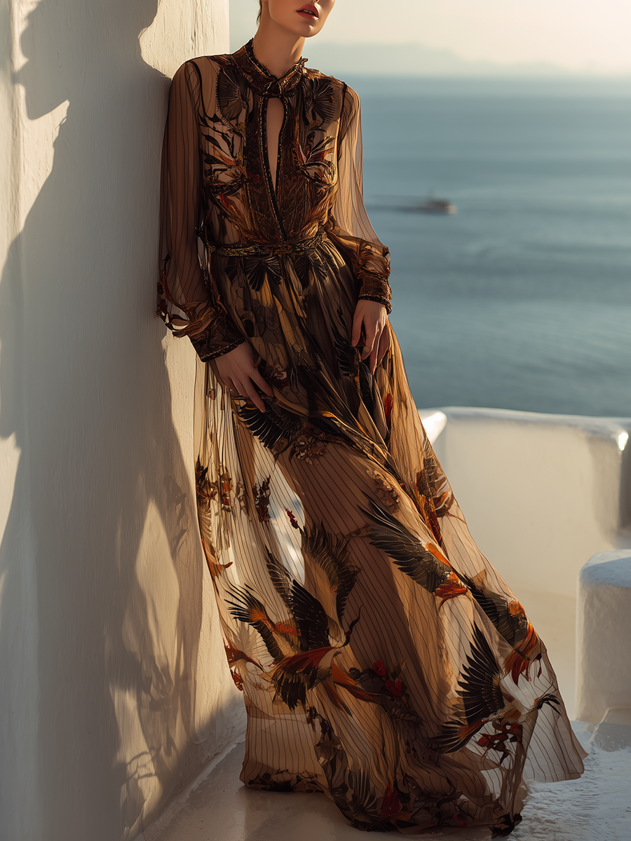 Luxury Resort-style Printed Chiffon Maxi Dress