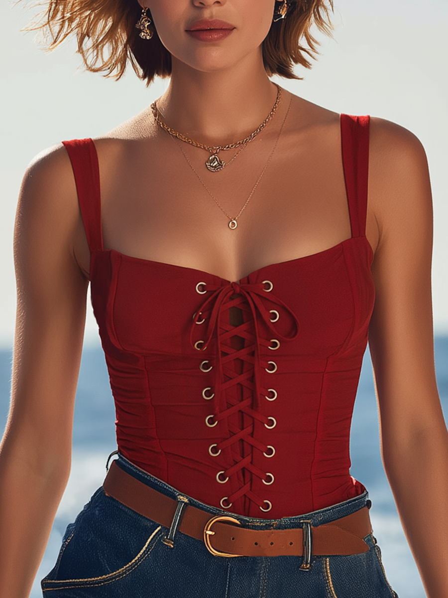 Vacation-style Red Strappy Tank Top