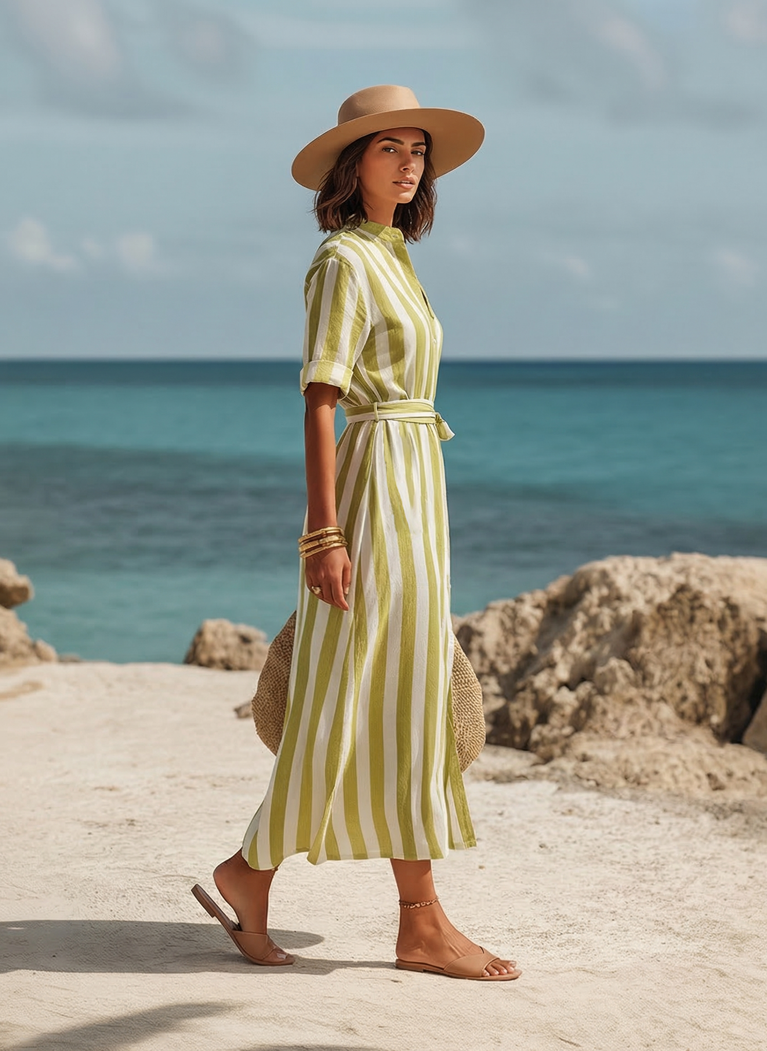 Style it with woven sandals, a straw tote, and delicate jewelry for an easy‑chic look that feels polished yet laid‑back—an ideal piece for sunny escapes and everyday elegance.